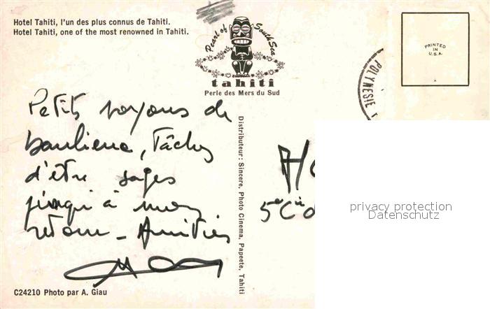 old postcard Tahiti Polynesien Hotel Tahiti postalisch gelaufen Erhaltung siehe scans [FriedD77]
