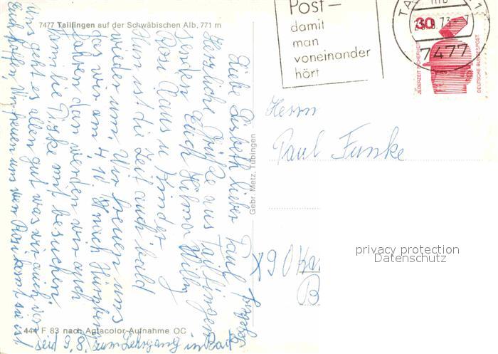 72652016 alte Postkarte Tailfingen Albstadt Blick ueber die Stadt Schwaebische Alb postalisch gelaufen Erhaltung siehe scans [FriedD77] KatCode: 11110008417079