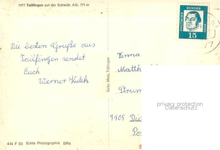 73769685 alte Postkarte Tailfingen Albstadt Gesamtansicht Schwaebische Alb postalisch gelaufen Fliegeraufnahme Erhaltung siehe scans [FriedD77] KatCode: 11110008417079