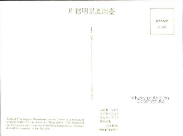 Tainan tomb of Five Imperial Concubines postalisch nicht gelaufen Erhaltung siehe scans