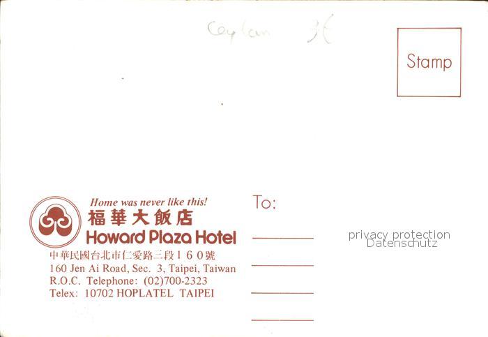 Taipei Howard Plaza Hotel Restaurant postalisch nicht gelaufen Erhaltung siehe scans