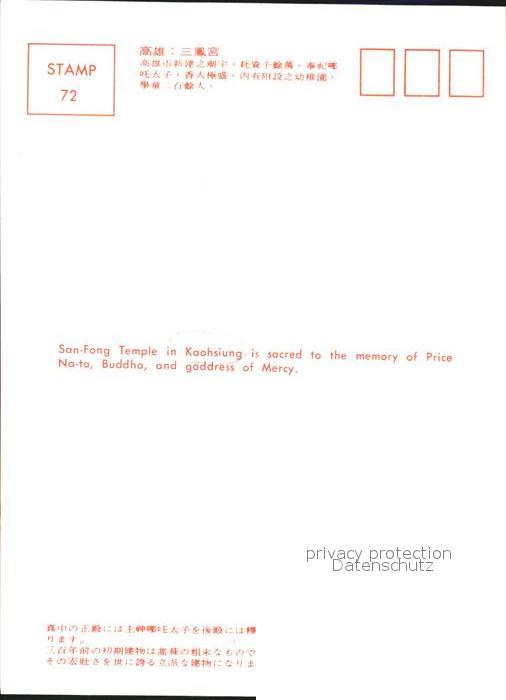 Taiwan San Fang Tempel postalisch nicht gelaufen Erhaltung siehe scans