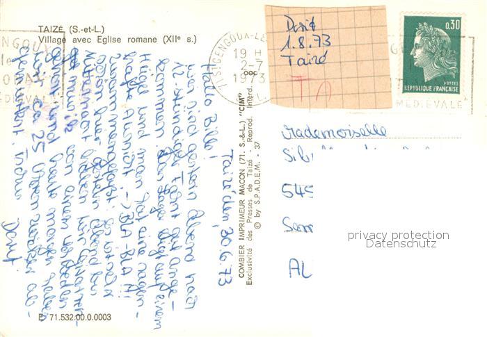 13684985 Taize Saone-et-Loire Village avec Eglise romane XIIe siècle postalisch gelaufen Erhaltung siehe scans [FriedD77] carte postale Frie Katcode 11170071571532