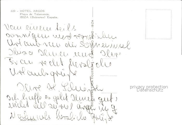 Talamanca Hotel Argos Swimming Pool postalisch nicht gelaufen Erhaltung siehe scans