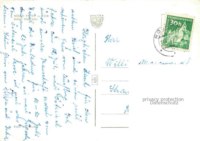 74110355 old postcard Tale Brezno Bries Nizke Tatry SK Hotel Partizan postalisch gelaufen Erhaltung siehe scans [WerneD78] KatCode: 11490