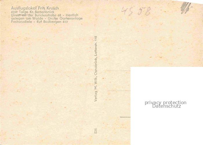 34145706 Talge Bersenbrueck Osnabrueck Niedersachsen Ausflugslokal Krutsch Gesellschaftszimmer Partie am Bach Idyll im Tierpark postalisch nicht gelaufen Erhaltung siehe scans [WerneD78] KatCode: 11110003459010