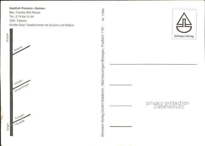 71986942 Talheim Tuttlingen Gasthof Pension Sonne postalisch nicht gelaufen Erhaltung siehe scans KatCode: 11110008327048