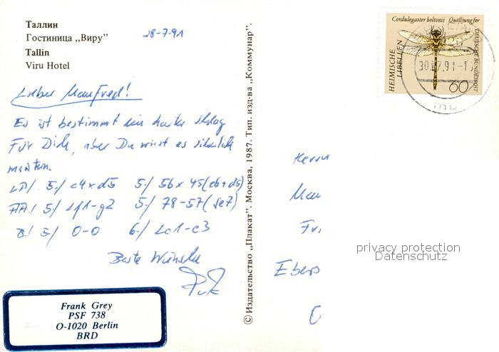 13211366 old postcard Tallin Viru Hotel postalisch gelaufen Erhaltung siehe scans [LiesaD40] KatCode: 11520