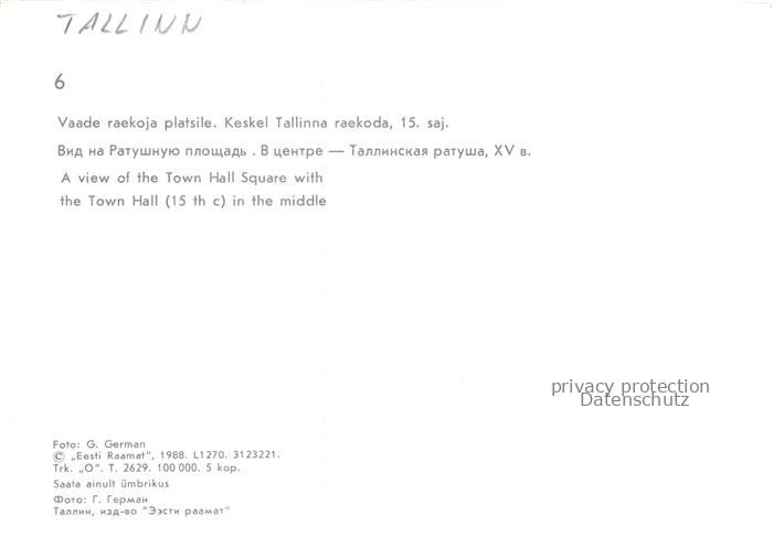 74040614 TALLINN Reval Estonia Ratuschna Platz Zentrum postalisch nicht gelaufen Erhaltung siehe scans [IrynaD87] KatCode: 11120
