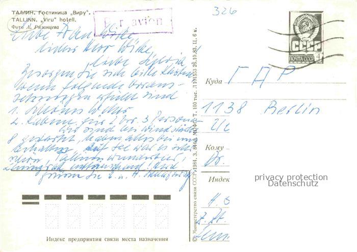 74156132 old postcard TALLINN Reval Estonia Viru Hotel postalisch gelaufen Erhaltung siehe scans [FriedD77] KatCode: 11120