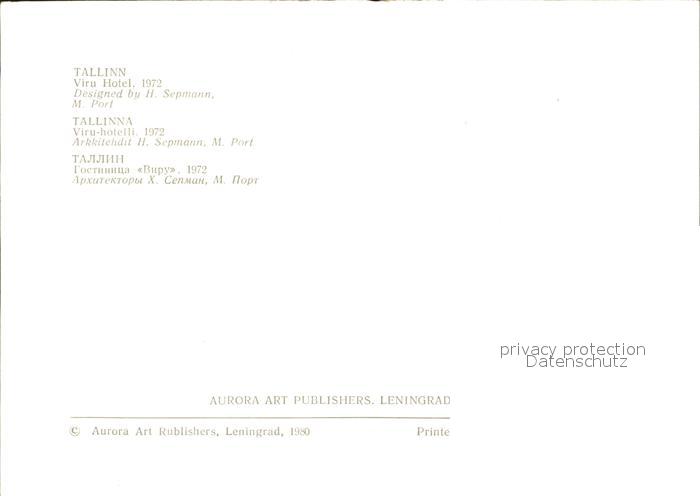 Tallinn Viru Hotel postalisch nicht gelaufen Erhaltung siehe scans