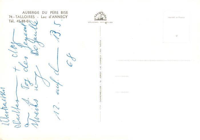 13877373 Talloires 74 Haute-Savoie Lac d’Annecy Auberge du Pere Bise Terrasse postalisch nicht gelaufen Erhaltung siehe scans [WerneD78] Wern Katcode 11170074174275