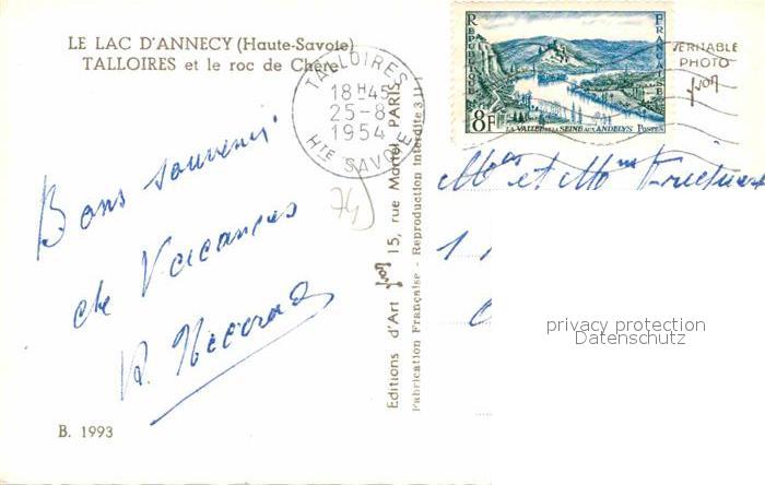 12672504 carte postale Talloires Chere postalisch gelaufen Erhaltung siehe scans [NatalD47] KatCode: 11170074174275