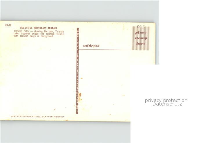 71954297 Tallulah Falls Showing the dam Tallulah Lake postalisch nicht gelaufen Erhaltung siehe scans KatCode: 14140120000000