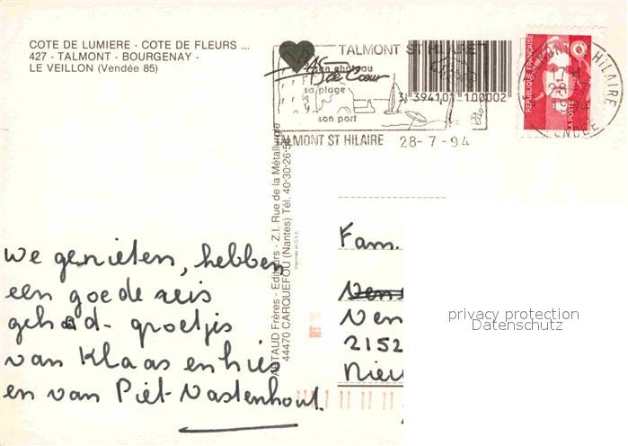 12789479 carte postale Talmont-Saint-Hilaire Bourgenay Le Veillon Fliegeraufnahme postalisch gelaufen Erhaltung siehe scans [WerneD78] KatCode: 11170085385288