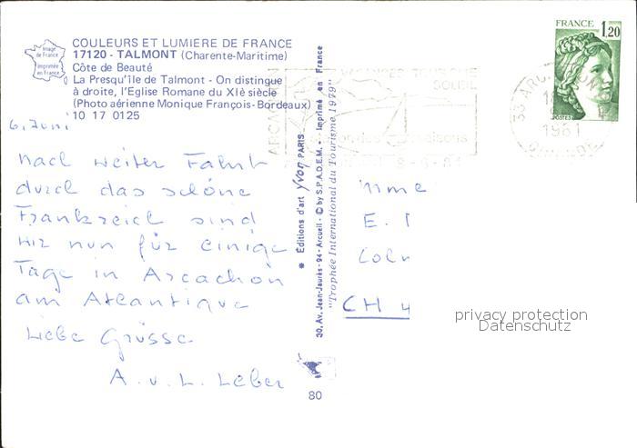 12350461 carte postale Talmont-Saint-Hilaire Fliegeraufnahme postalisch gelaufen Erhaltung siehe scans KatCode: 11170085385288