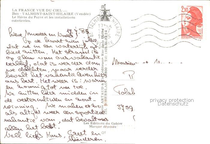 12205648 carte postale Talmont-Saint-Hilaire Le Havre du Payre et les installations ostreicoles Vue aerienne postalisch gelaufen Erhaltung siehe scans KatCode: 11170085385288