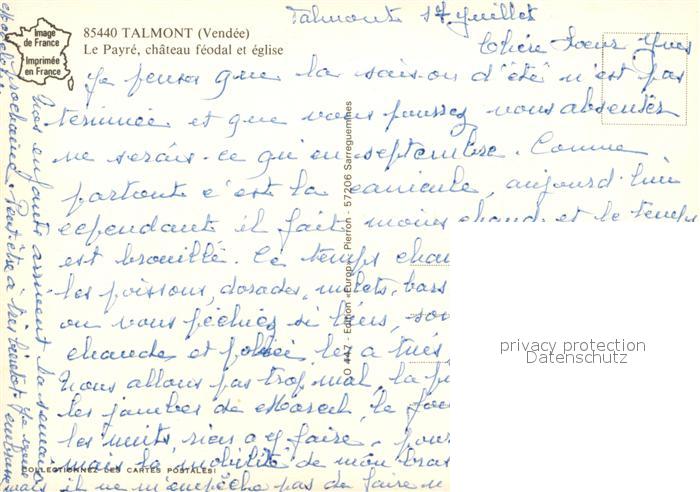 Talmont-Saint-Hilaire Le Payré Chateau féodal Eglise postalisch nicht gelaufen Erhaltung siehe scans [FriedD77]
