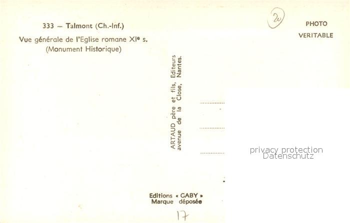 13494046 Talmont-sur-Gironde Eglise romane XIe siècle Monument historique postalisch nicht gelaufen Erhaltung siehe scans [FriedD77] KatCode: 11170017417437