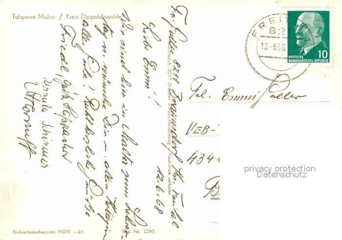 72648635 alte Postkarte Talsperre Malter postalisch gelaufen Erhaltung siehe scans [NatalD47] KatCode: 11110014290080
