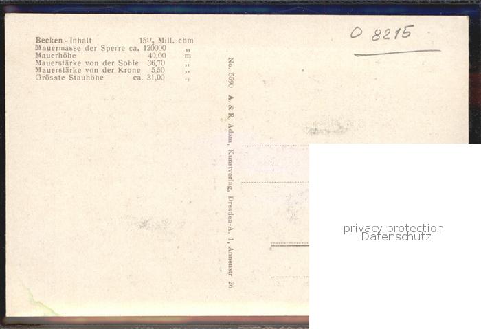 Talsperre Staudamm Klingenberg Sachsen postalisch nicht gelaufen Erhaltung siehe scans