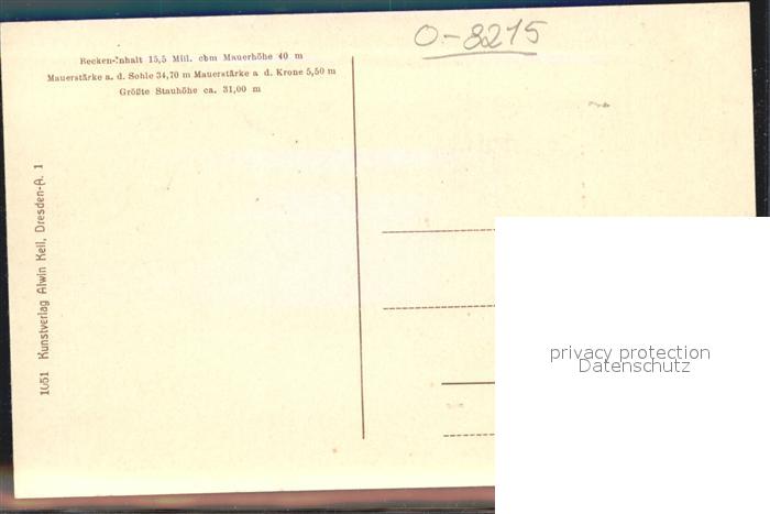 Talsperre Staudamm Koenig-Friedrich-August Sperrmauer Klingenberg Sachsen postalisch nicht gelaufen Erhaltung siehe scans