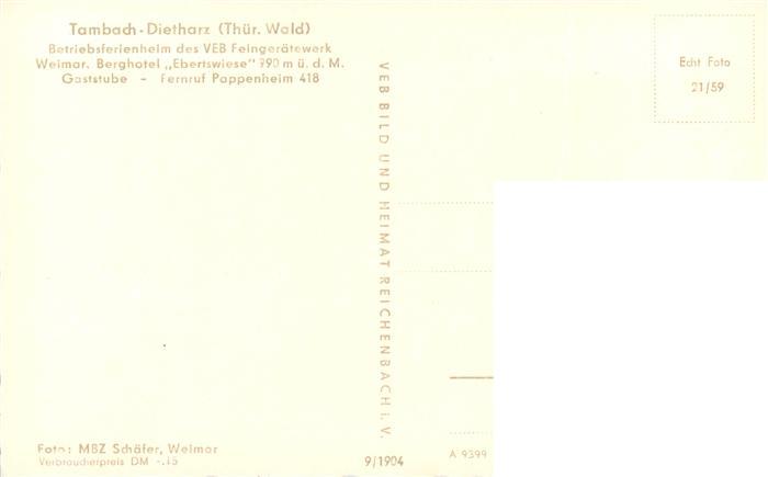 73899805 Tambach-Dietharz Berghotel Ebertswiese Gaststube postalisch nicht gelaufen Erhaltung siehe scans [WerneD78] KatCode: 11110016067065