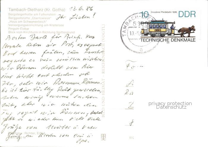 72373186 alte Postkarte Tambach-Dietharz Bergsteigerhuette Falkenstein Gaststaette Ebertswiese Pinguin-Eisbar postalisch gelaufen Erhaltung siehe scans KatCode: 11110016067065