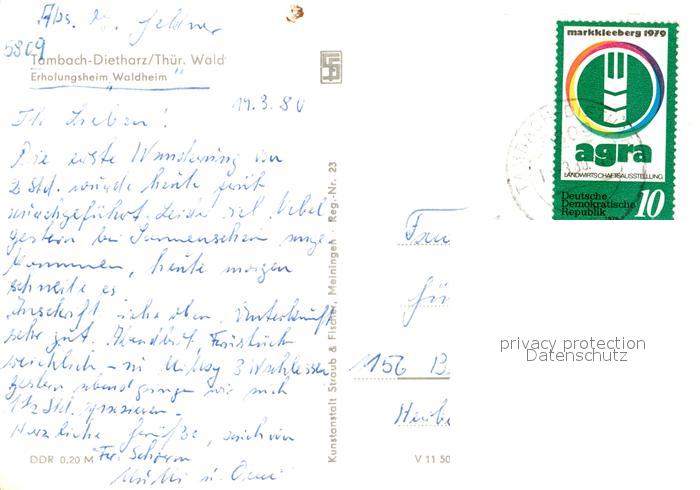 73036536 alte Postkarte Tambach-Dietharz Erholungsheim Waldheim postalisch gelaufen Erhaltung siehe scans [KathaD81] KatCode: 11110016067065