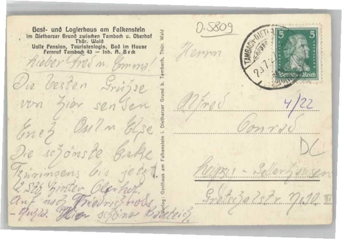 40627582 Tambach-Dietharz Gasthaus Logierhaus Falkenstein KatCode 11110016067065