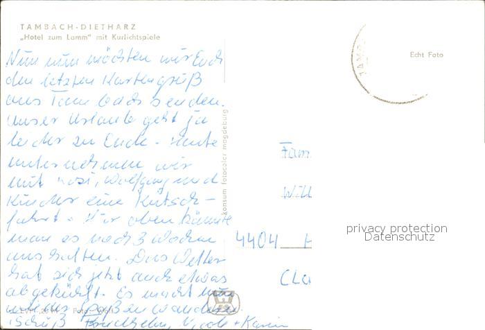 72090479 alte Postkarte Tambach-Dietharz Hotel zum Lamm postalisch gelaufen Erhaltung siehe scans KatCode: 11110016067065