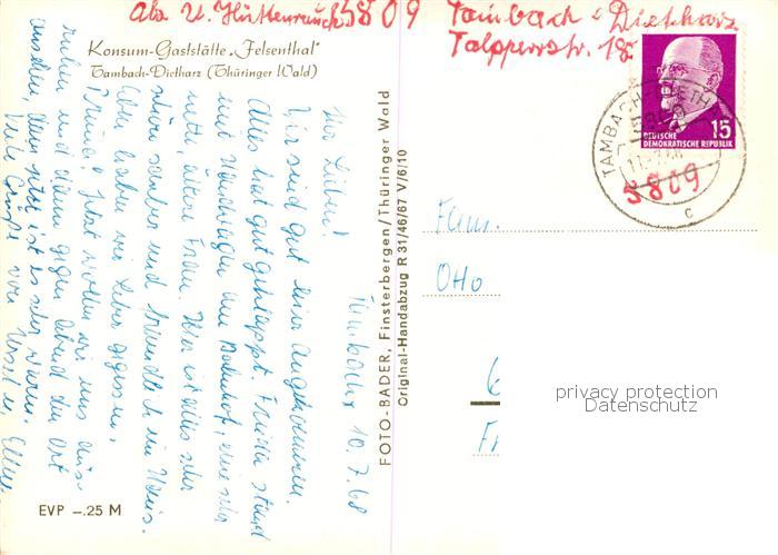 73853754 alte Postkarte Tambach-Dietharz Konsum Gaststaette Felsenthal Gastraeume Panorama postalisch gelaufen Erhaltung siehe scans [WerneD78] KatCode: 11110016067065