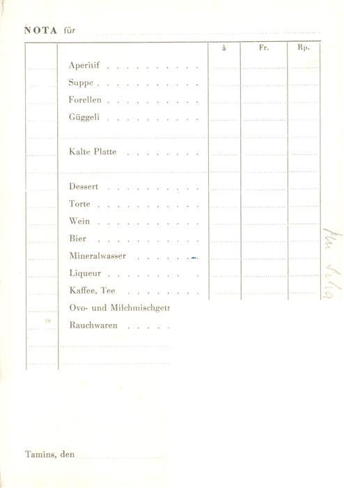 13871442 Tamins GR Forellen Stube postalisch nicht gelaufen Werbekarte (keine Postkarte) Erhaltung siehe scans [WerneD78] KatCode: 11470100320128
