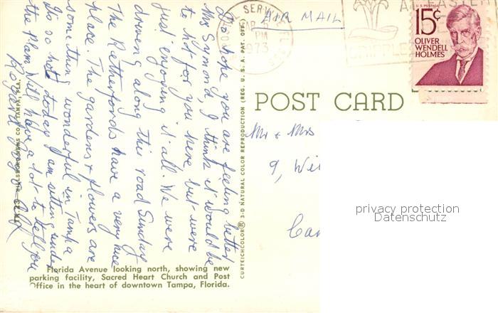 73123661 old postcard Tampa Florida Florida Avenue looking north Sacred Heart Church Post Office postalisch gelaufen Erhaltung siehe scans [FriedD77] KatCode: 14140110000000