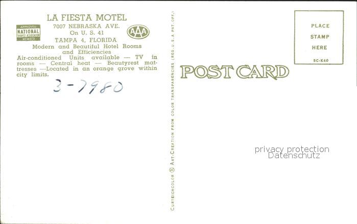 72293186 Tampa Florida La Fiesta Motel postalisch nicht gelaufen Erhaltung siehe scans KatCode: 14140110000000