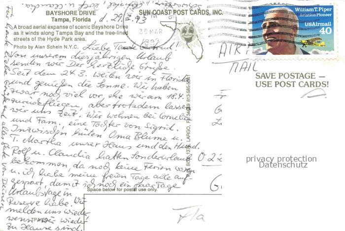 74095216 old postcard Tampa Florida USA Bayshore Drive Fliegeraufnahme postalisch gelaufen Erhaltung siehe scans [WerneD78] KatCode: 14140110000000