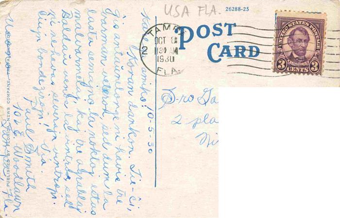 73973414 old postcard Tampa Florida USA Hillsboro Hotel postalisch gelaufen Erhaltung siehe scans [FriedD77] KatCode: 14140110000000