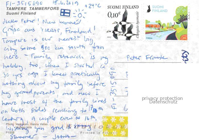 74005807 old postcard Tampere Suomi Stadtpanorama Kirche Luftaufnahme postalisch gelaufen Erhaltung siehe scans [FriedD77] KatCode: 11160