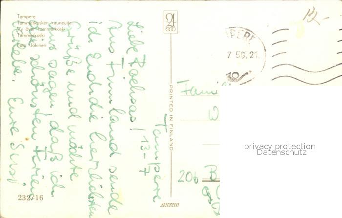 old postcard Tampere Tammerkoski postalisch gelaufen Erhaltung siehe scans