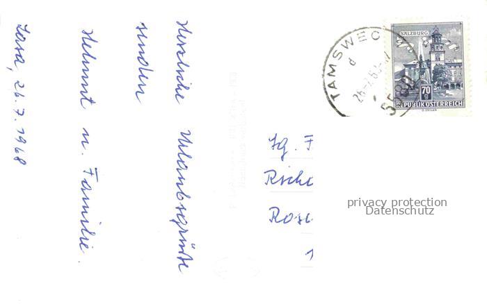 74156273 alte Postkarte Tamsweg Lungau Salzburg AT Lungau Gebirge Ortspanorama Kirche Wiesen Wald Tal Berge Sommerfrische postalisch gelaufen Erhaltung siehe scans [Karloger] KatCode: 11390321050510