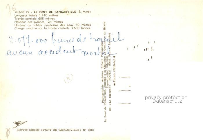 13515321 Tancarville Pont vue aérienne postalisch nicht gelaufen Erhaltung siehe scans [FriedD77] KatCode: 11170076276684