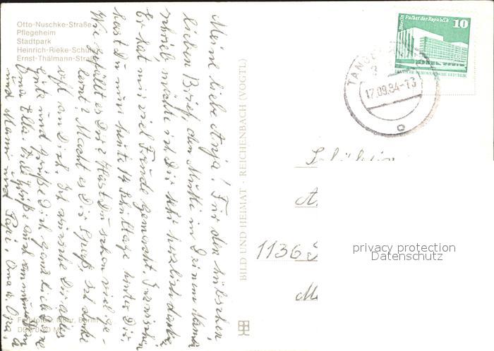72458115 alte Postkarte Tangerhuette Otto Nuschke Strasse Pflegeheim Stadtpark Heinrich Rieke Schule Ernst Thaelmann Strasse postalisch gelaufen Erhaltung siehe scans KatCode: 11110015090545