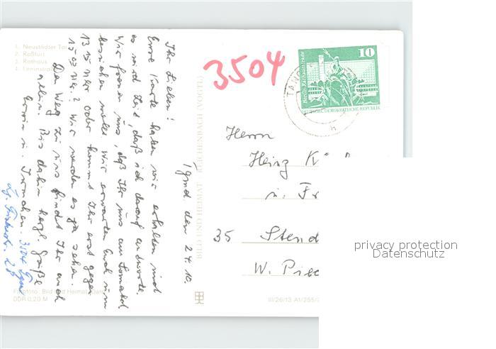 72359800 alte Postkarte Tangermuende postalisch gelaufen Erhaltung siehe scans KatCode: 11110015090550