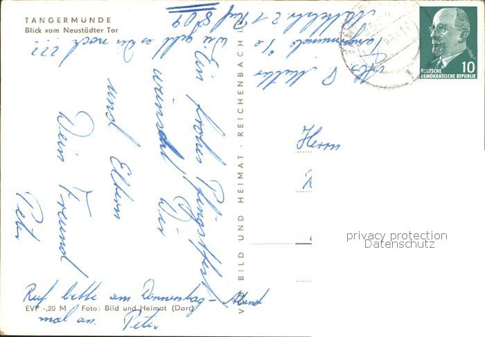72049282 alte Postkarte Tangermuende Blick vom Neustaedter Tor postalisch gelaufen Erhaltung siehe scans KatCode: 11110015090550