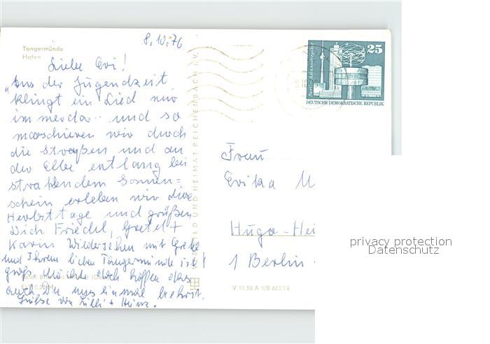 72078855 alte Postkarte Tangermuende Bootshafen Kirche postalisch gelaufen Erhaltung siehe scans KatCode: 11110015090550