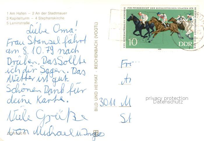 73751541 alte Postkarte Tangermuende Hafenpartie Stadtmauer Kapitelturm Stephanskirche Leninstrasse postalisch gelaufen Erhaltung siehe scans [WerneD78] KatCode: 11110015090550