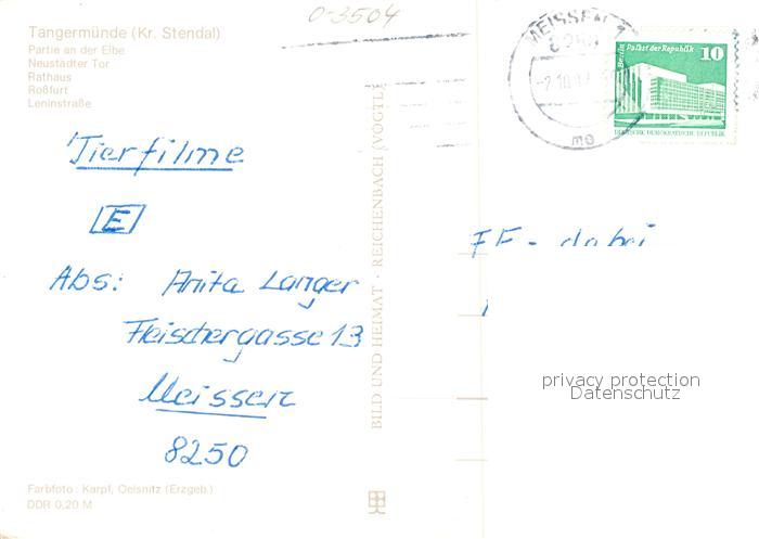73029122 alte Postkarte Tangermuende Neustaedter Tor Rathaus Rossfurt Leninstrasse postalisch gelaufen Erhaltung siehe scans [KathaD81] KatCode: 11110015090550
