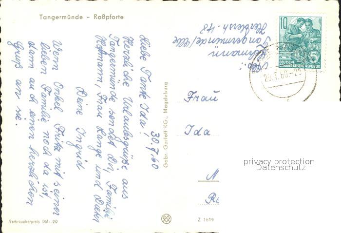 72008550 alte Postkarte Tangermuende Rosspforte postalisch gelaufen Erhaltung siehe scans KatCode: 11110015090550