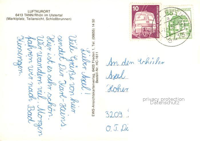 73223842 alte Postkarte Tann Rhoen Denkmal Schloss-Brunnen Marktplatz postalisch gelaufen Erhaltung siehe scans [LiesaD40] KatCode: 11110006631023