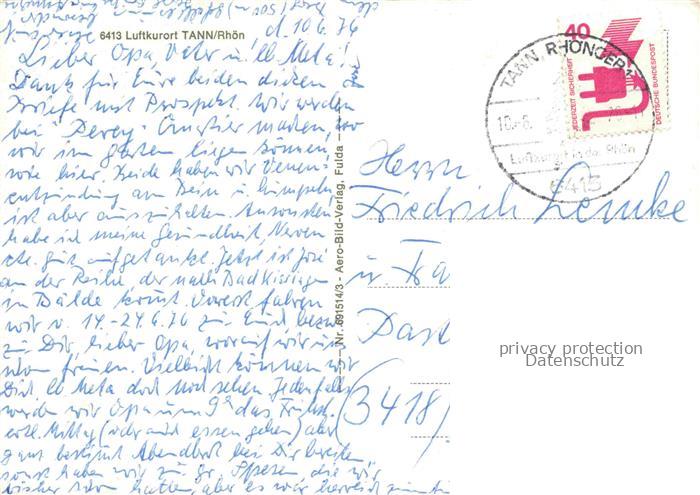 74153593 alte Postkarte Tann Rhoen Fulda Hessen Panorama Luftkurort Motive Ortszentrum Stadttor postalisch gelaufen Erhaltung siehe scans [FriedD77] KatCode: 11110006631023